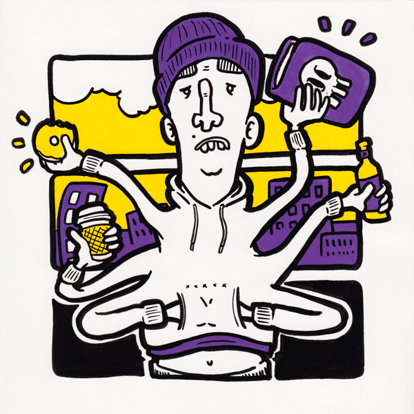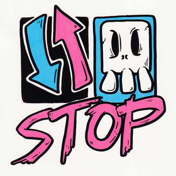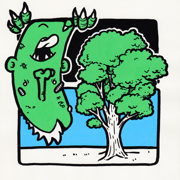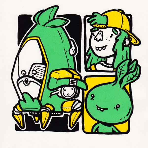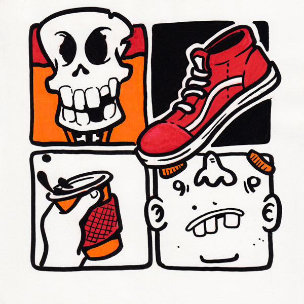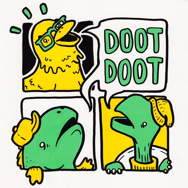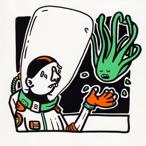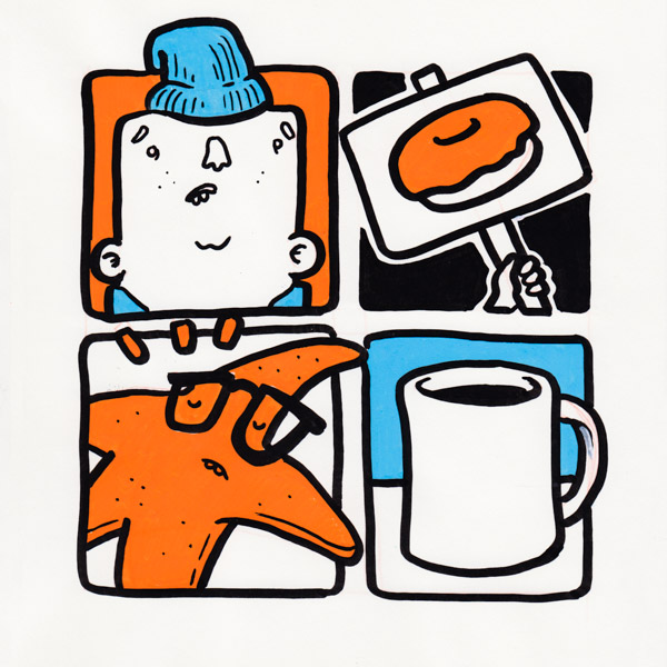 Posca marker on 7.5×7.5 inch sketchbook paper.