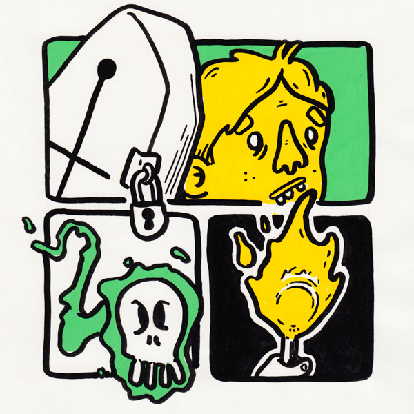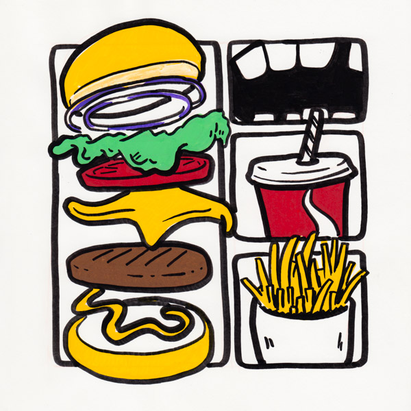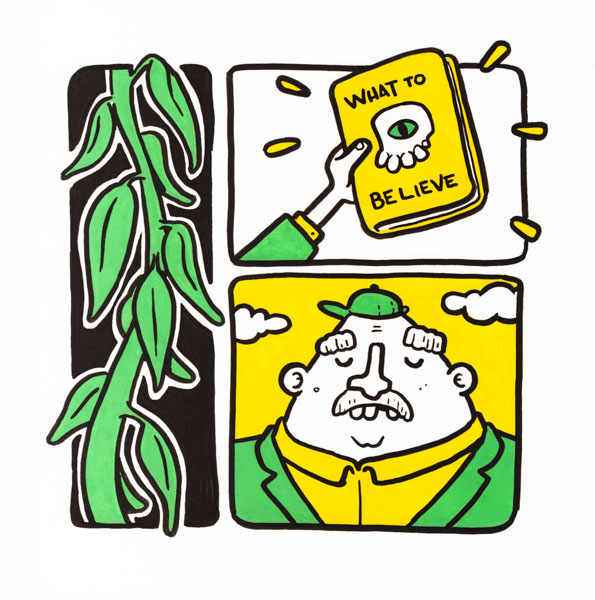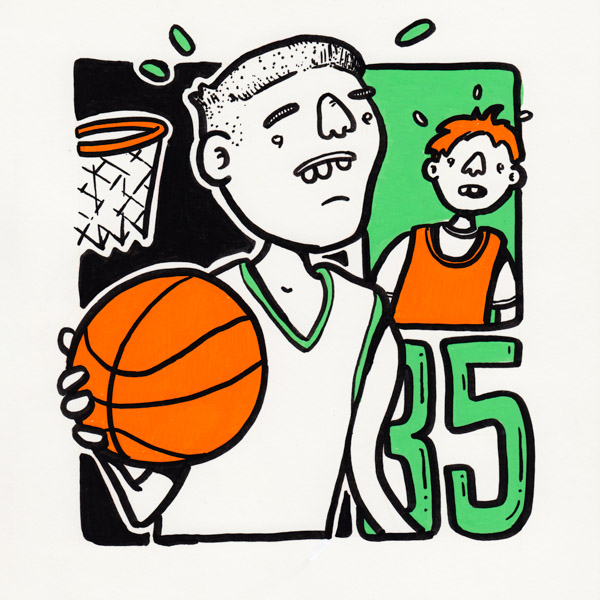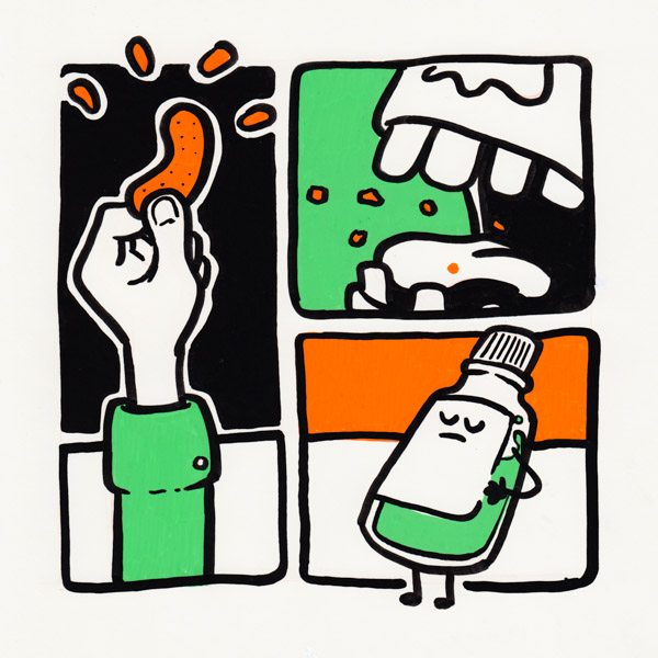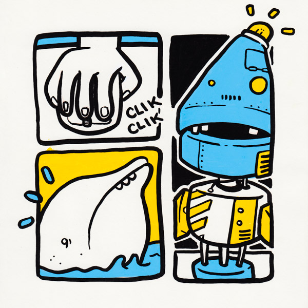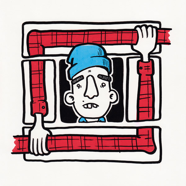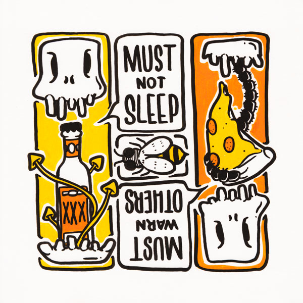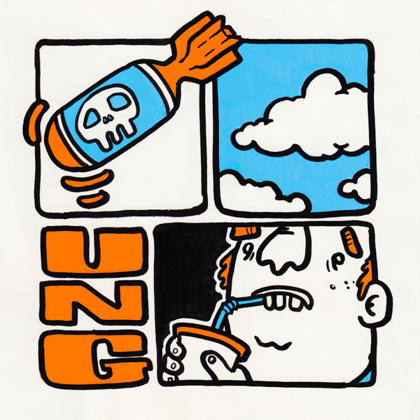 Posca marker on 7.5×7.5 inch sketchbook paper.